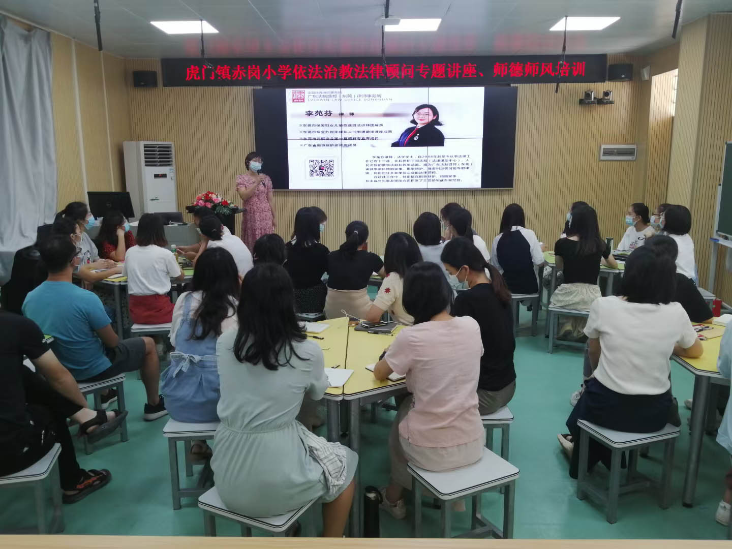 为深入贯彻落实习近平总书记全面依法治国新理念新思想新战略,切实增强教育工作者的法治意识和法律素养,营造学习宣传《民法典》的浓厚氛围。广东法制盛邦(东莞)律师事务所李苑芬律师受虎门镇赤岗小学邀请,于8月27日下午开展“依法治教”专题讲座,为全校教师提供保护学校、维护师生生命财产安全和正当权益的法律武器。